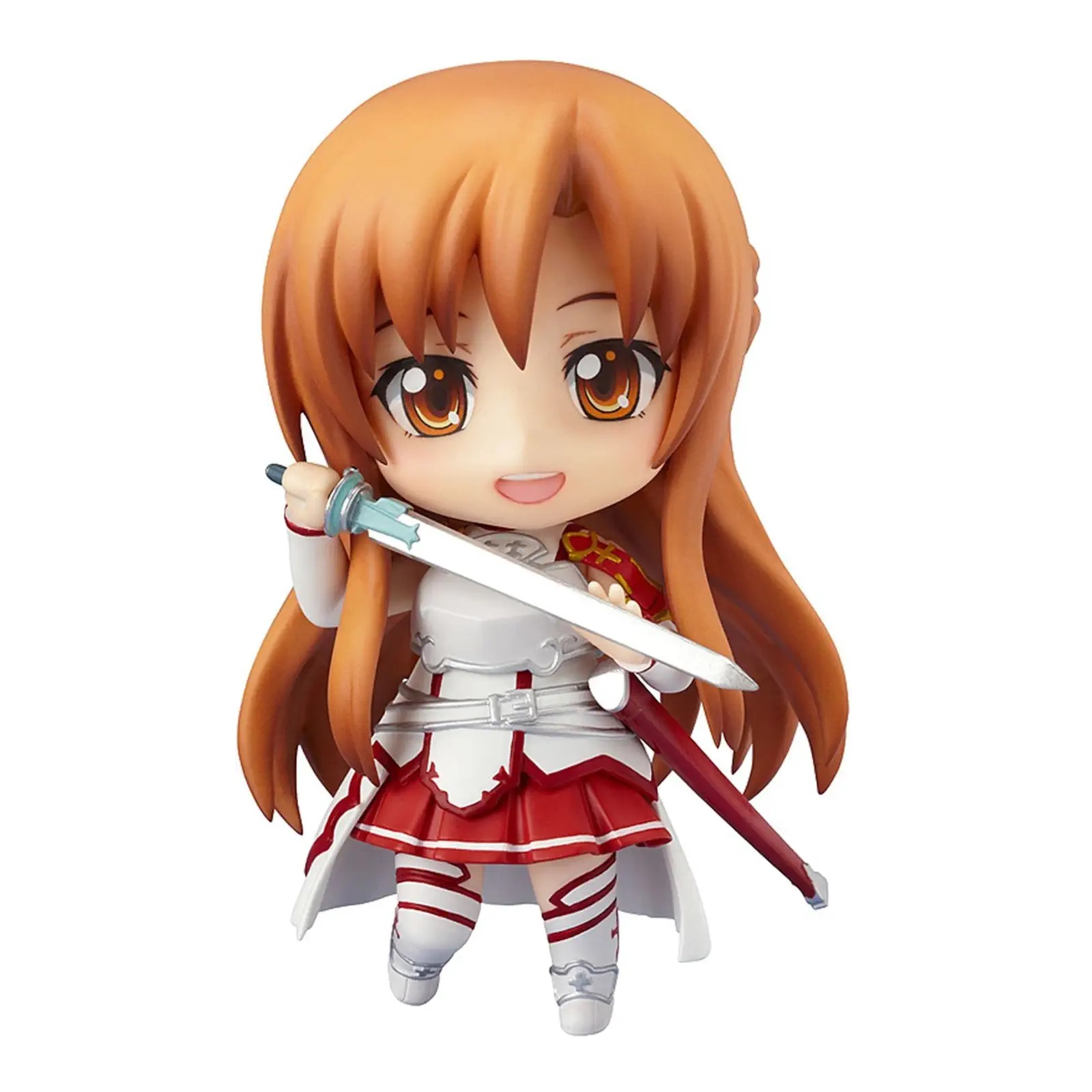 اکشن فیگور نندروید آسونا که مک کمپانی ارائه میکند یک مدل جمع و جور اما دارای جزئیات دقیق است و این نسخه برای طرفداران مجموعه هنر شمشیر زنی آنلاین یک انتخاب متفاوت محسوب میشود زیرا سبک نندروید با ترکیب چهره های فانتزی و فرم کوچک باعث میشود شخصیت آسونا حالتی جذاب تر پیدا کند و این روند برای کلکسیونرهایی که به دنبال مدل های محدود و وارداتی ژاپنی هستند اهمیت زیادی دارد. در این مدل امکان قرار دادن فیگور در چندین ژست مختلف فراهم شده و این قابلیت به دلیل طراحی مفصلی خاص سری نندروید ایجاد شده است و همین ویژگی اجازه میدهد آسونا در حالت های جنگی، ژست های آرام یا فرم های نمایشی قرار گیرد. شمشیر اصلی او که با نام لامبینت لایت شناخته میشود در بسته بندی قرار دارد و ترکیب این شمشیر با فرم کوچک بدن باعث میشود مدل در صحنه های اکشن زیبایی خاص داشته باشد هرچند برخی افراد ممکن است تصور کنند اندازه شمشیر نسبت به اندازه بدن کمی بزرگتر است ولی این موضوع بخشی از سبک فانتزی نندروید به حساب می آید. جزئیات لباس به گونه ای طراحی شده که بخش های زره، طرح های سفید و قرمز و لبه های لباس به شکل برجسته دیده شوند و این نکته در نگاه اول محصول را از نسخه های ساده تر متمایز میکند. وزن هشت اونس این مدل باعث میشود هنگام قرار دادن روی پایه یا قفسه تعادل کافی داشته باشد و با ضربه های کوچک جا به جا نشود مگر در سطح های خیلی لغزنده که نیاز به تنظیم مجدد پایه دارد. در این نسخه کیفیت چاپ چهره به خوبی رعایت شده و سه حالت مختلف صورت در بسته قرار گرفته که اجازه میدهد طیف احساسات گوناگون از چهره آرام تا حالت نبرد بازسازی شود و این تنوع برای نمایش های طولانی مدت جذابیت ویژه ایجاد میکند.
