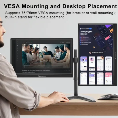 با وزن کم تنها 1.3 پوند و ابعاد 14.2×8.9 اینچ، این مانیتور 15.6 اینچی در کمترین حالت 0.39 اینچ ضخامت، به راحتی در کیف شما جای میگیرد. طراحی سبک و جمعوجور آن، قابلیت نصب VESA 75×75 میلیمتری و زاویهپذیری از 0 تا 90 درجه، آن را برای کار در حال حرکت و محیطهای مختلف ایدهآل میسازد.