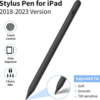 سازگار با iPad 2018 تا 2023 – همراه با ۳ نوک یدکی و شارژ سریع USB-C