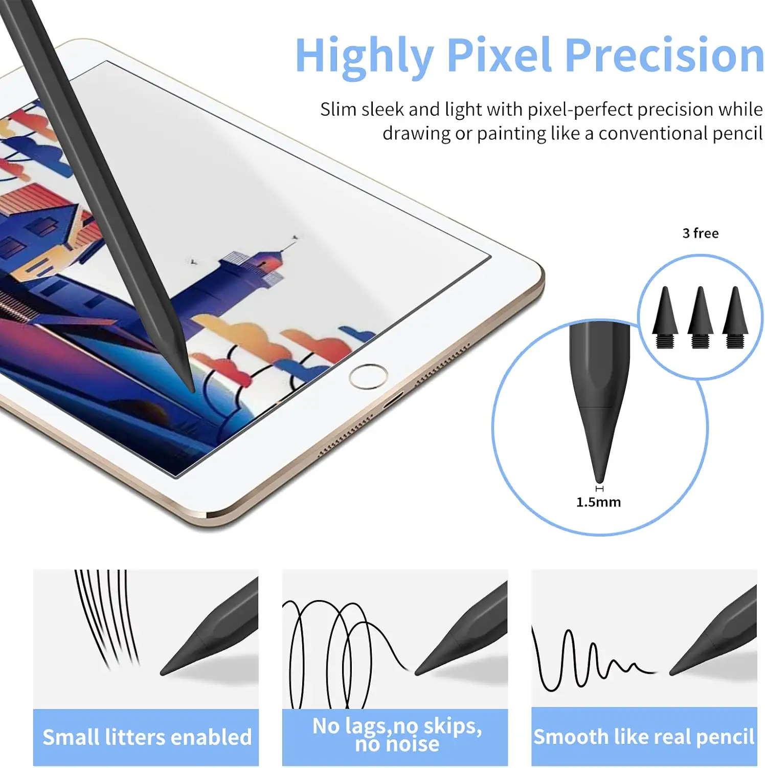 - 🖊 نوک بادوام 1.5mm – طراحی نرم، دقیق، بدون تأخیر یا خط ترکخورده